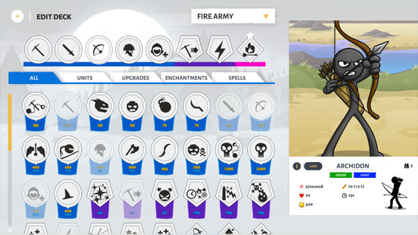 2、角色造型:角色设计简单,虽然是火柴人造型,角色特征鲜明,可以控制自己想要的军队,在不同地图与敌人展开策略对战。