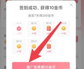 点击看广告再得金币按钮