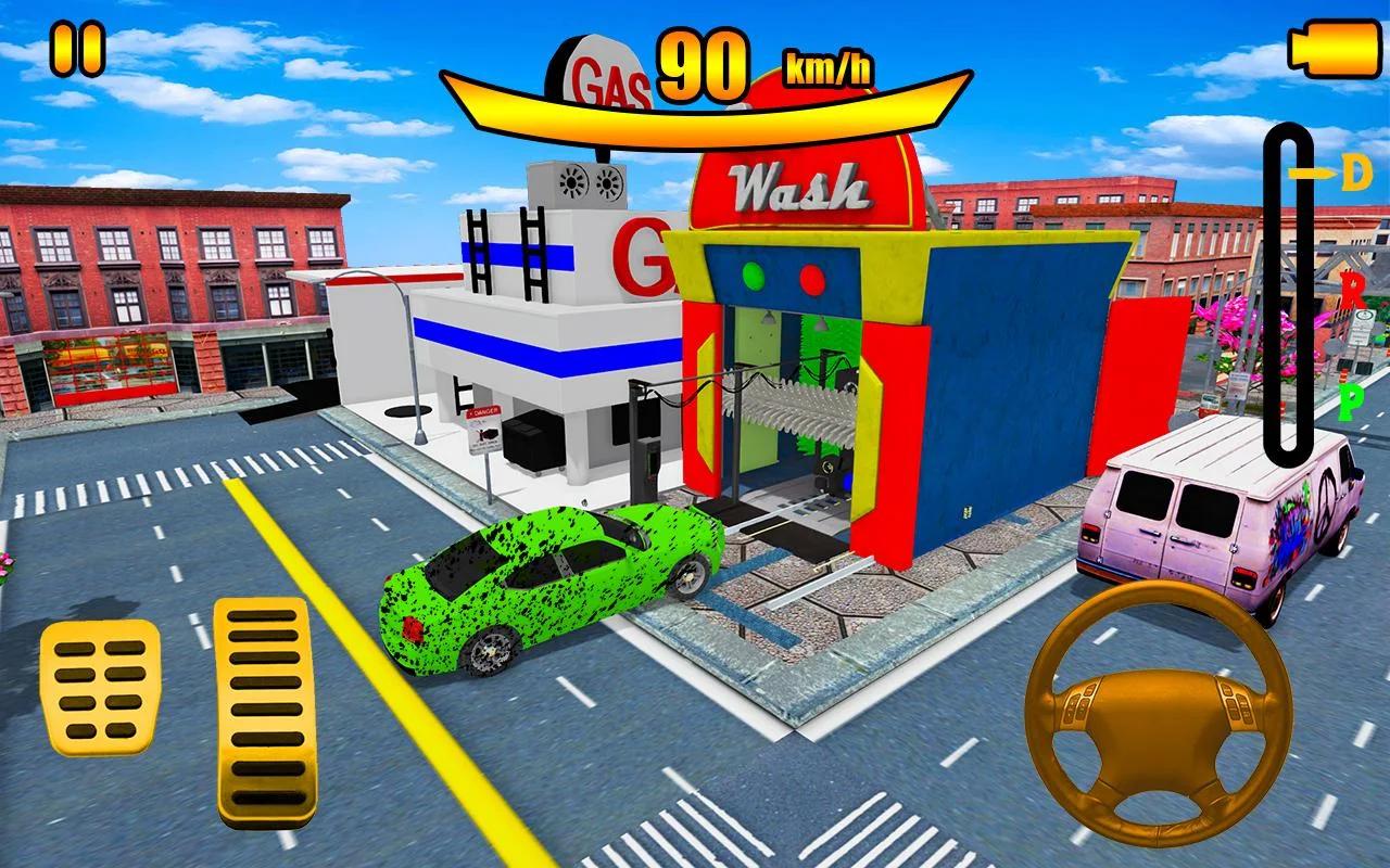 2、汽车洗车驾驶学校游戏在开始洗车之前,学习如何洗车以及如何操作洗车机。