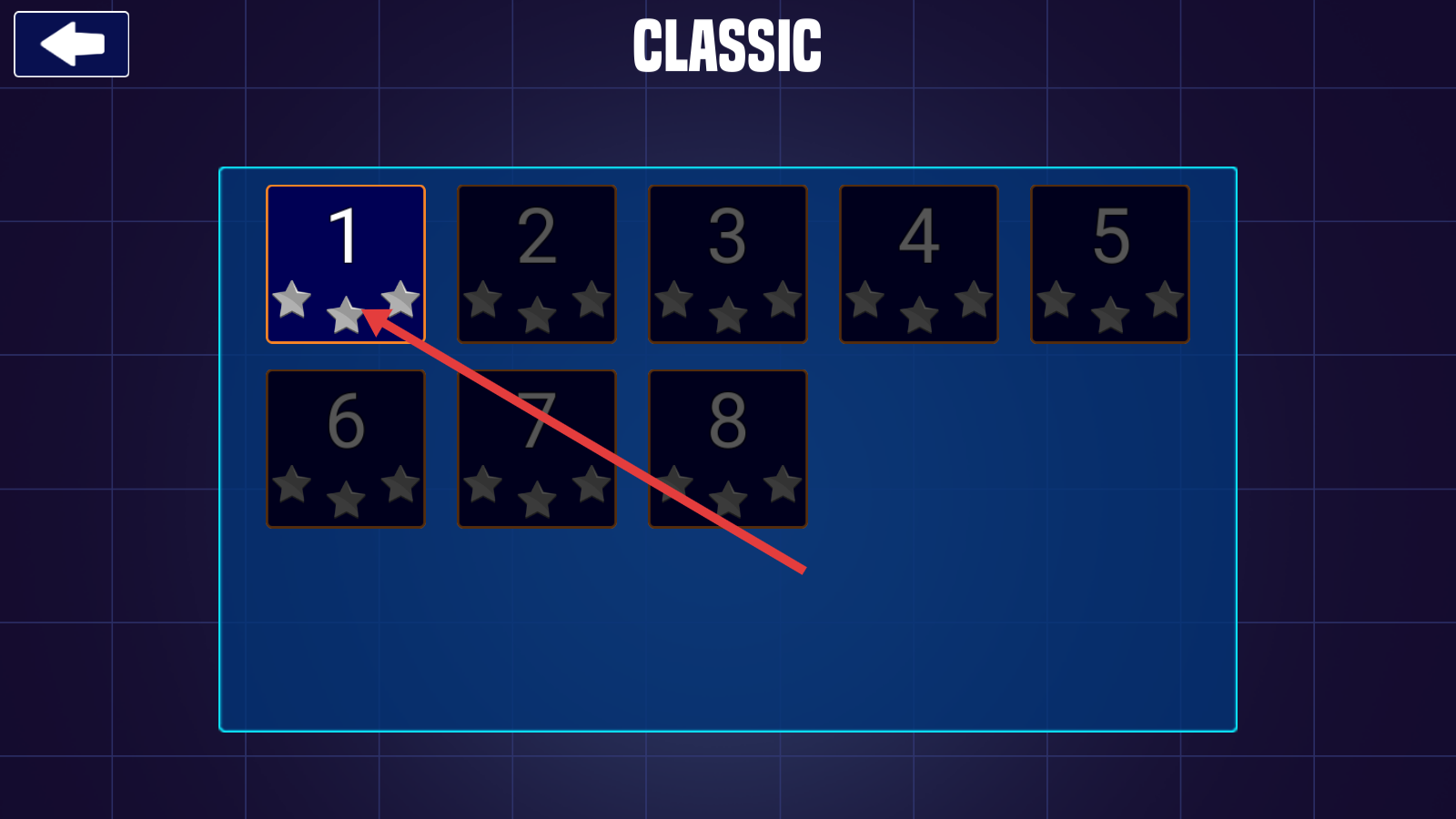 1、进入【CLASSIC】模式,选择标有【1】的关卡,开启战斗试炼,熟悉基础玩法。