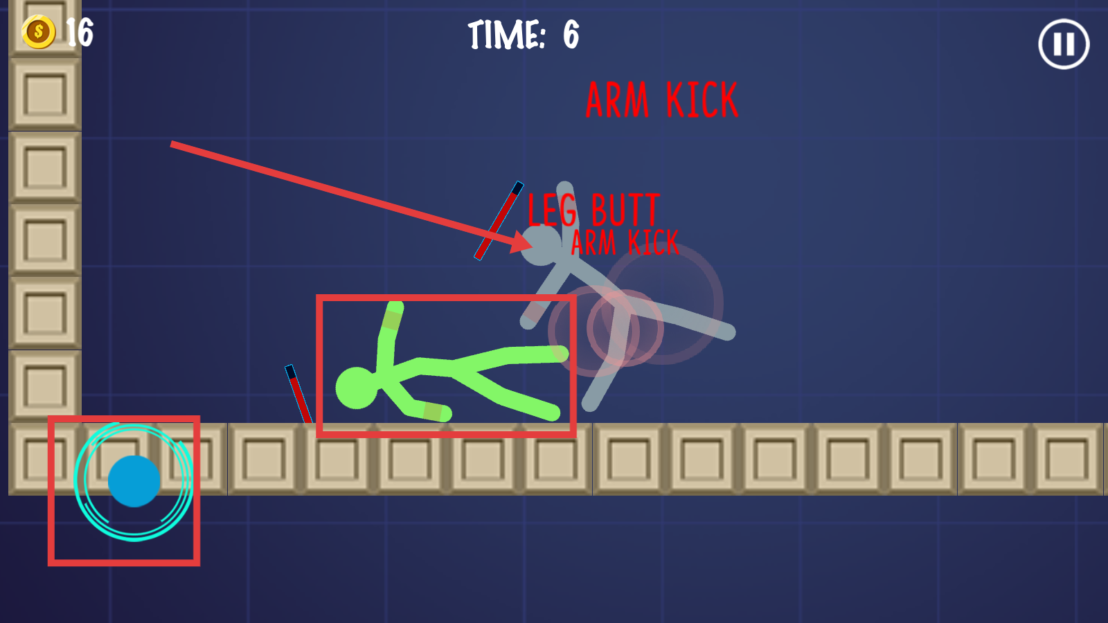 3、战斗时用左侧【虚拟摇杆】控移动,施展【ARM-KICK】技能,消灭绿色敌人,把控输出。