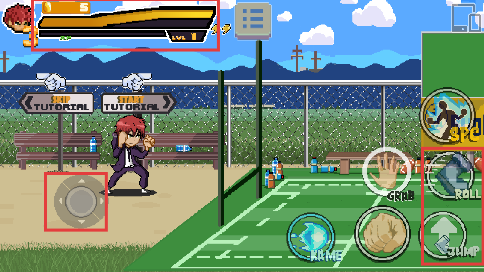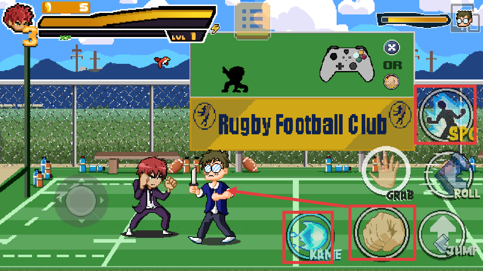 1、熟悉界面操作,左下角【虚拟摇杆】控移动,右侧【GRAB-ROLL-JUMP】按键对应抓取、翻滚与跳跃,快速上手。