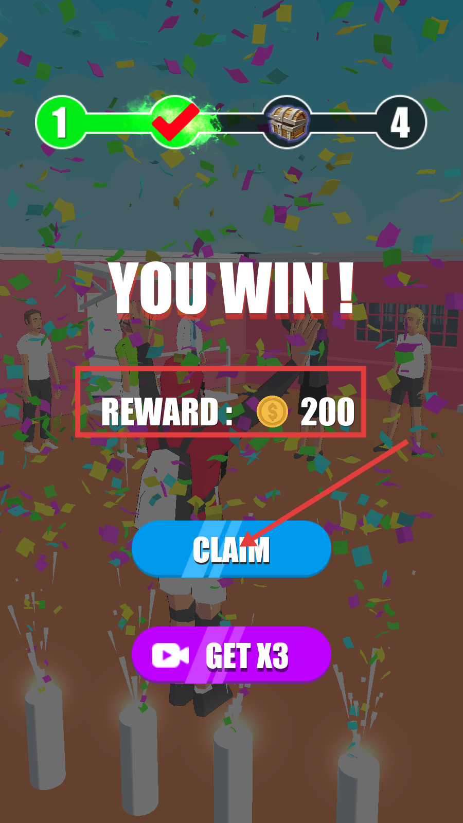4、胜利后点击【CLAIM】领取【200-金币】,积累资源用于属性升级,提升实力。
