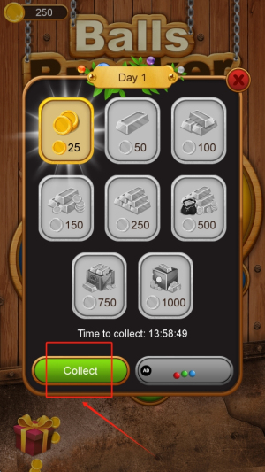 1、收集资源:点击“Collect”按钮收集游戏中的金币和道具。
