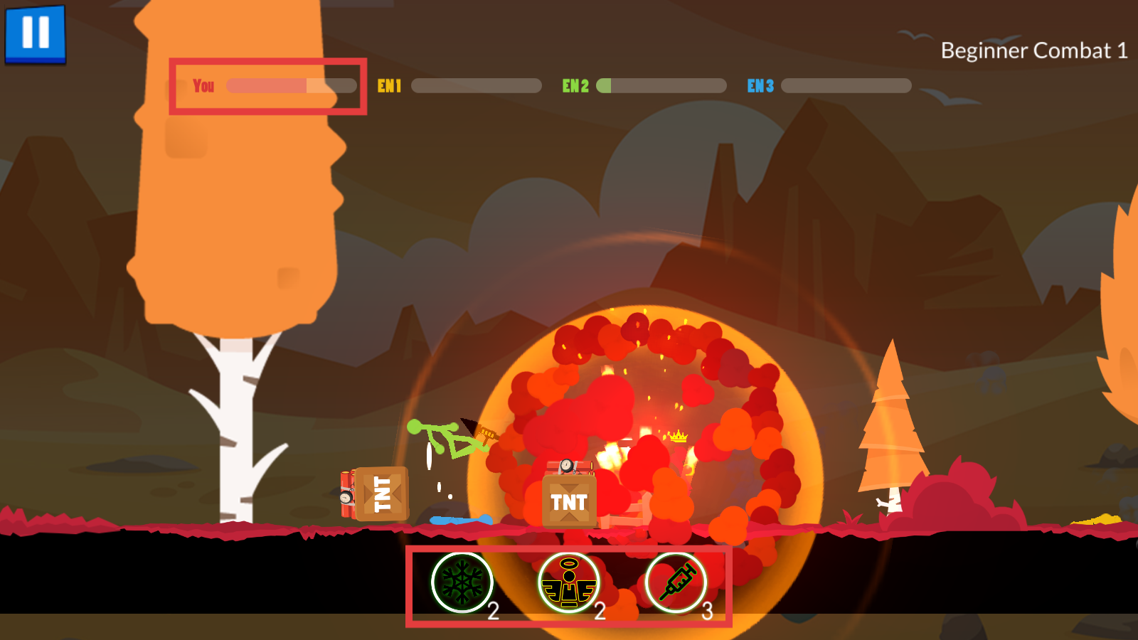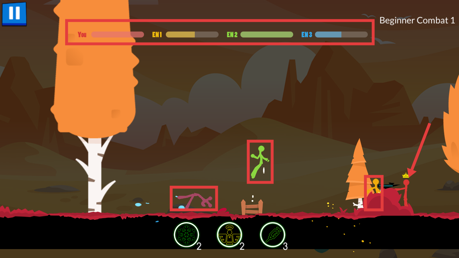 2、战斗时紧盯上方血量条,区分【EN1-紫】【EN2-绿】【EN3-红(皇冠)】敌人,规划输出顺序。