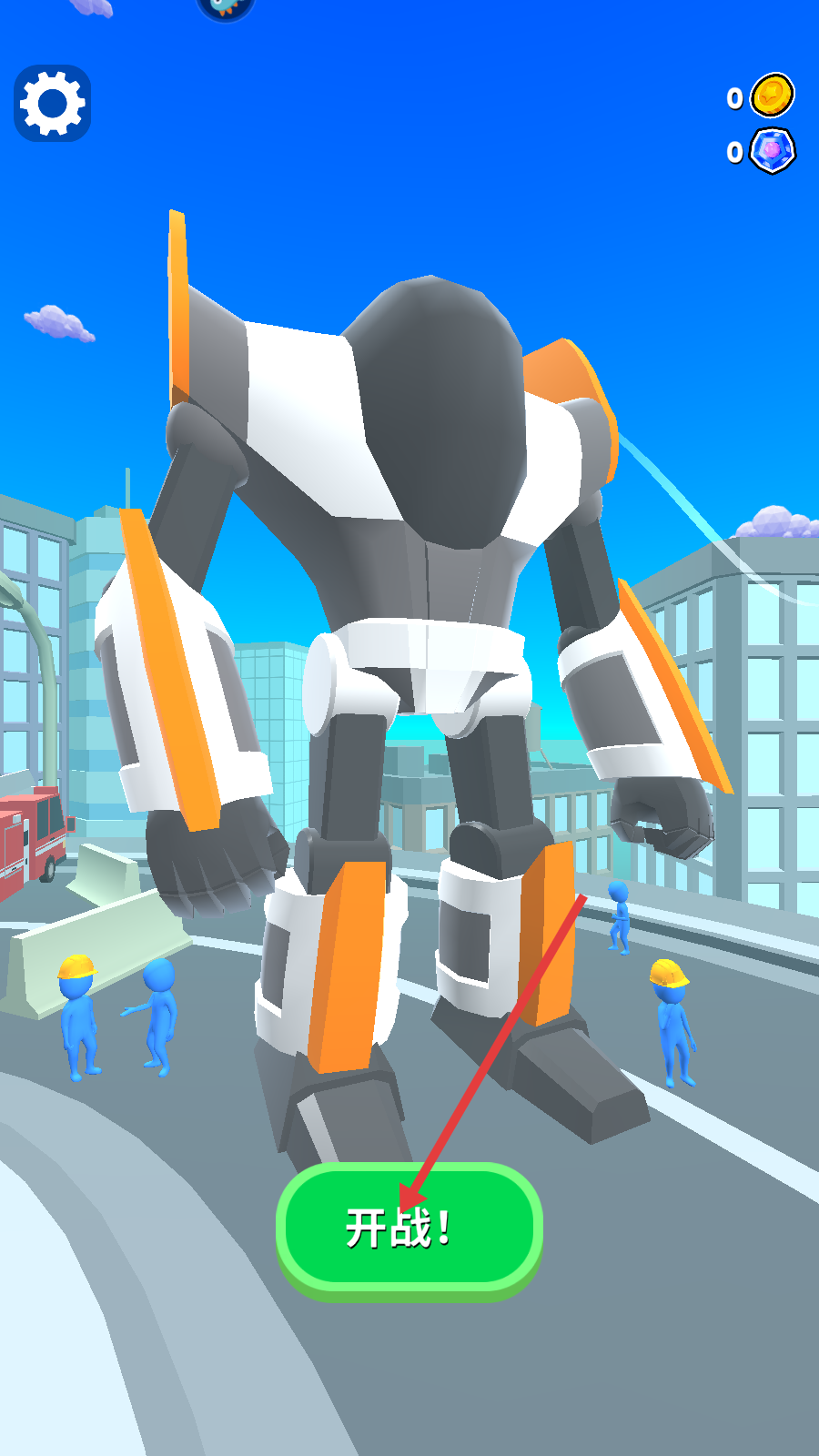 1、操控巨型机甲前,点击底部【开战!】按钮,正式开启对战挑战。