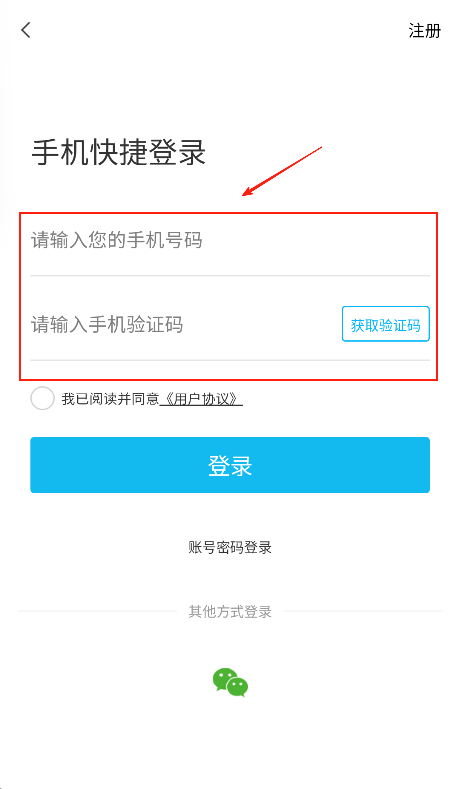 2、登录时选手机快捷登录最方便,输入手机号和验证码后别忘了勾选同意协议,着急的话还能用账号密码或其他方式登录哦。