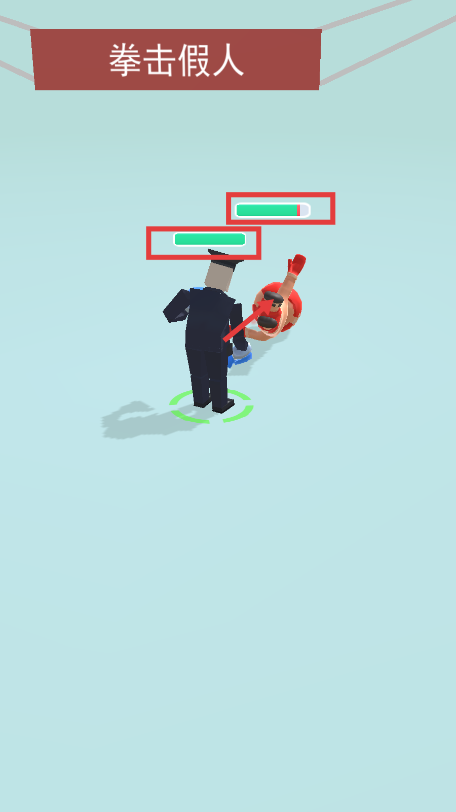 3、战斗时紧盯双方血条(绿色),主动攻击消耗假人血量,直至其血条清空。