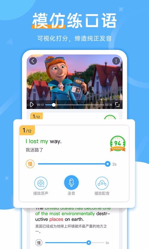 3、对句子进行视觉评估,为每句话、每一个词甚至每一秒提炼纯正的发音,学习体验感出色。