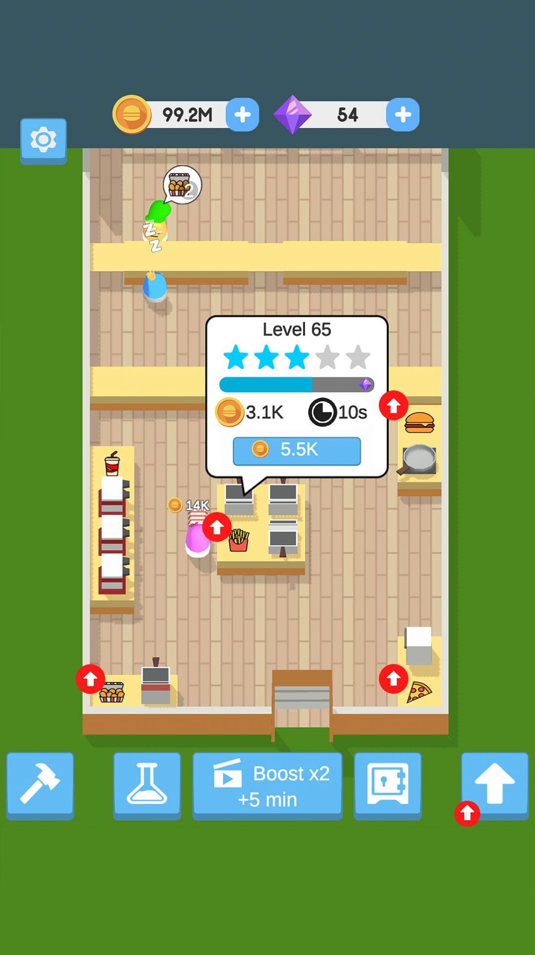 2、玩家可以根据自己经营的小店规划自己的目标,这样玩家就可以不断扩大自己的餐厅,慢慢做大。