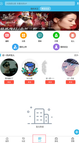 把最热门的游戏资源展现给大家,让大家不在盲目的去寻找资源,并且还有一天up达人排行榜展示。