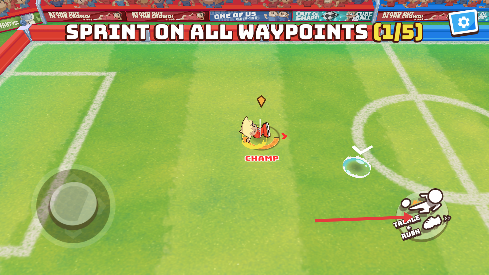 2、关卡中按【STEP-ON-ALL-WAYPOINTS-(0/5)】提示,滑动左侧摇杆操控角色,踩绿色标记点推进进度。