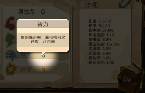 智力影响着角色的暴击率、暴击槽积累速度和连击率,所以这非常的适合速度、爆发型的职业。