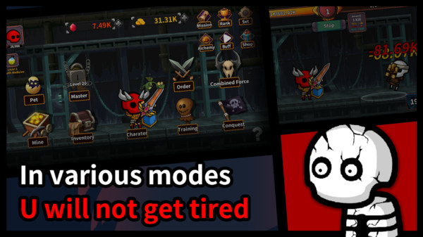 1、成为地牢中的骷髅战士,是要不断杀死各种怪物和敌人以解锁自己的游戏。