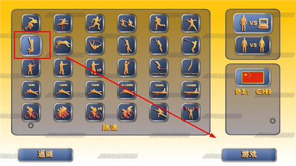 1、在主界面中点击体育竞赛,选择你所要参加的项目,这里选择的是跳远