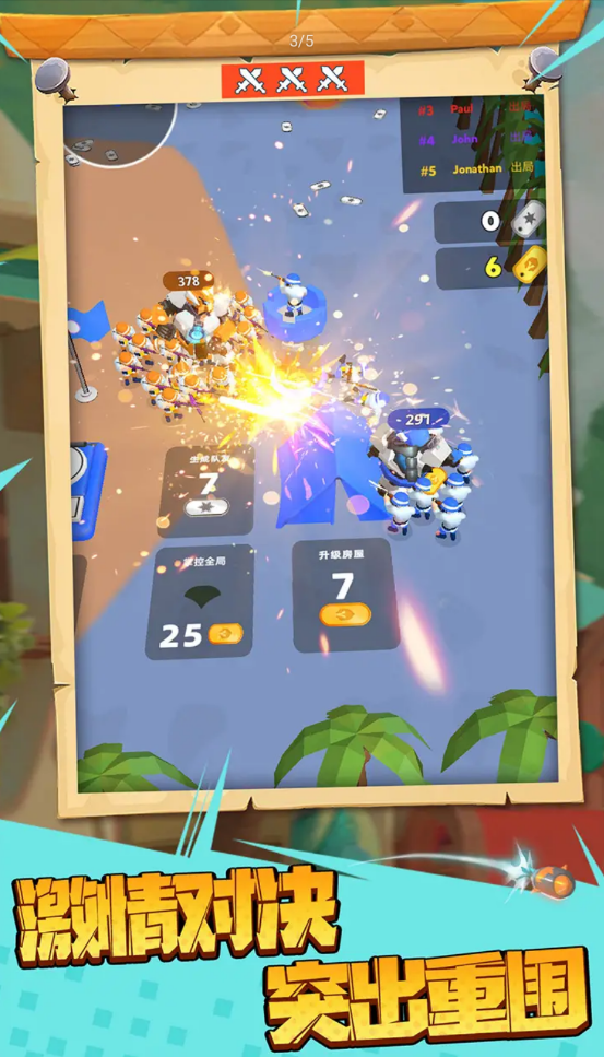3、不断收集各种强大的武器,让你的火力更加凶猛,感受王国战争模拟器无敌版的快乐。