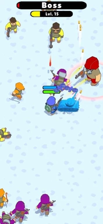 3、突击队人群战斗有着有趣而欢乐的游戏体验,使用各种强大的武器,消灭所有的老板。