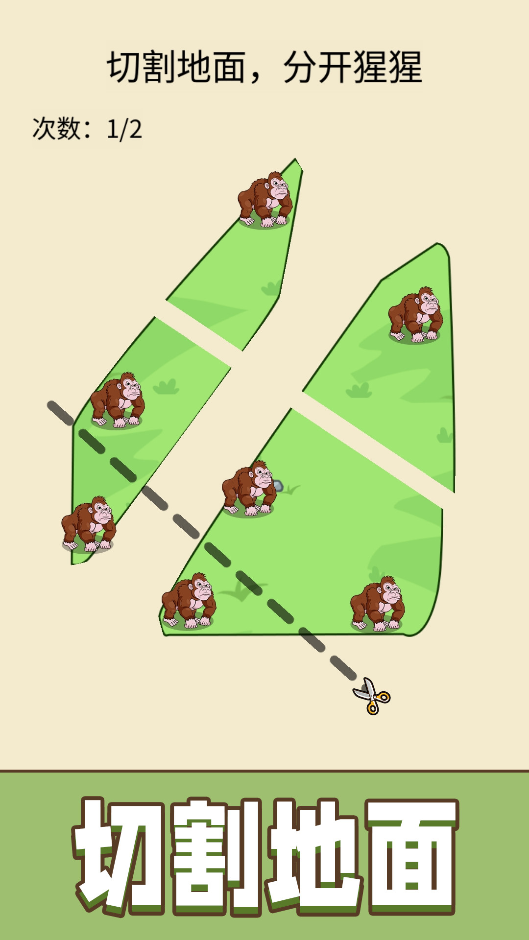 1、超级划线达人游戏里玩家也是要将猩猩给划分的,这也是很考验玩家的能力哦。