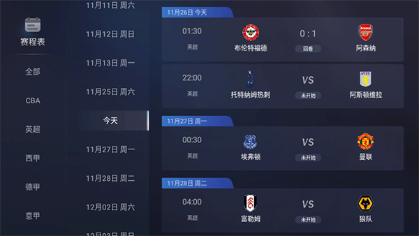 4、进入赛程表界面可详细查看每场比赛的时间,在赛程表下方还能再次切换比赛项目