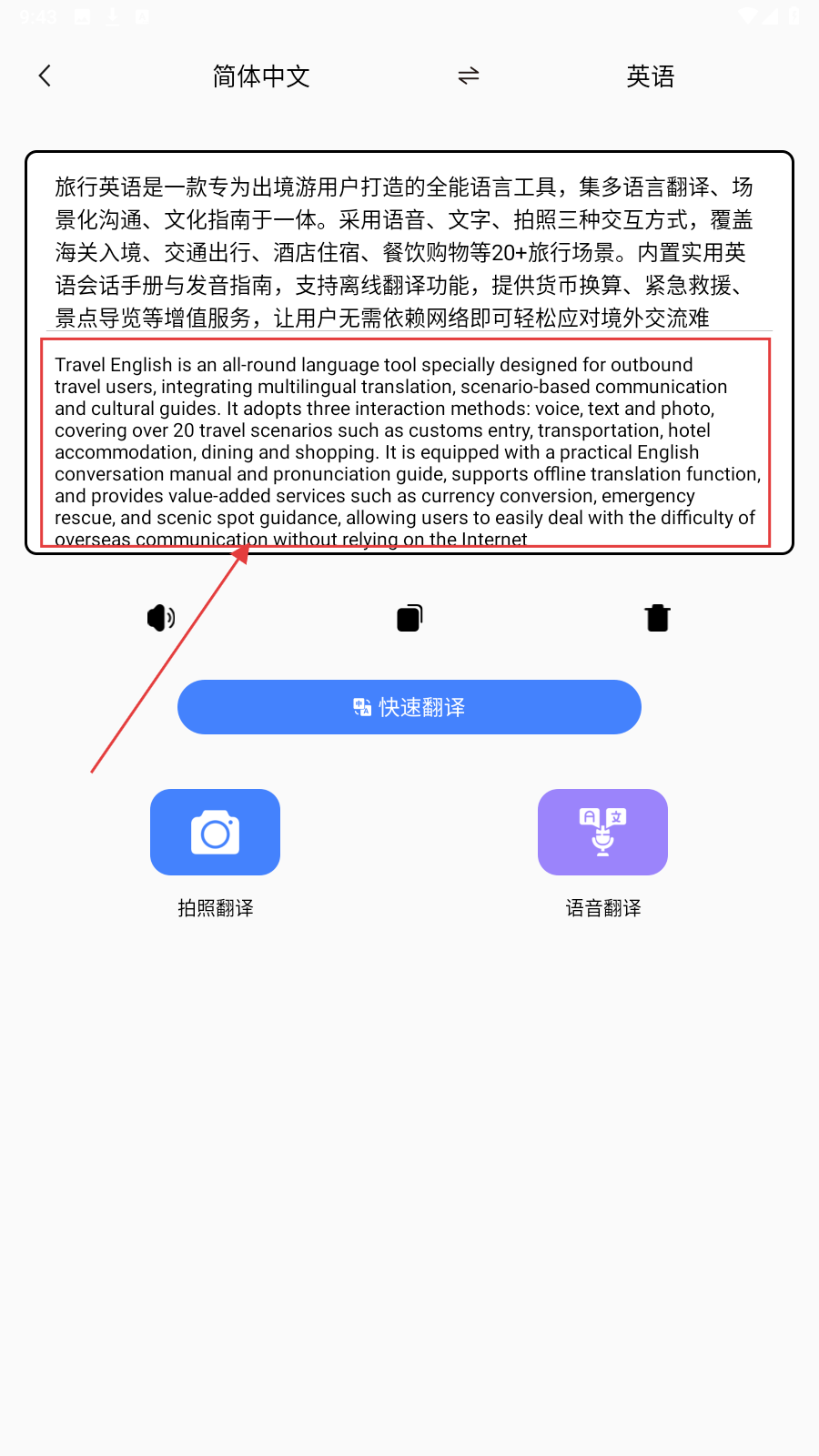 2、点击后即会生成内容,再也不怕出境游玩语言不通的情况。