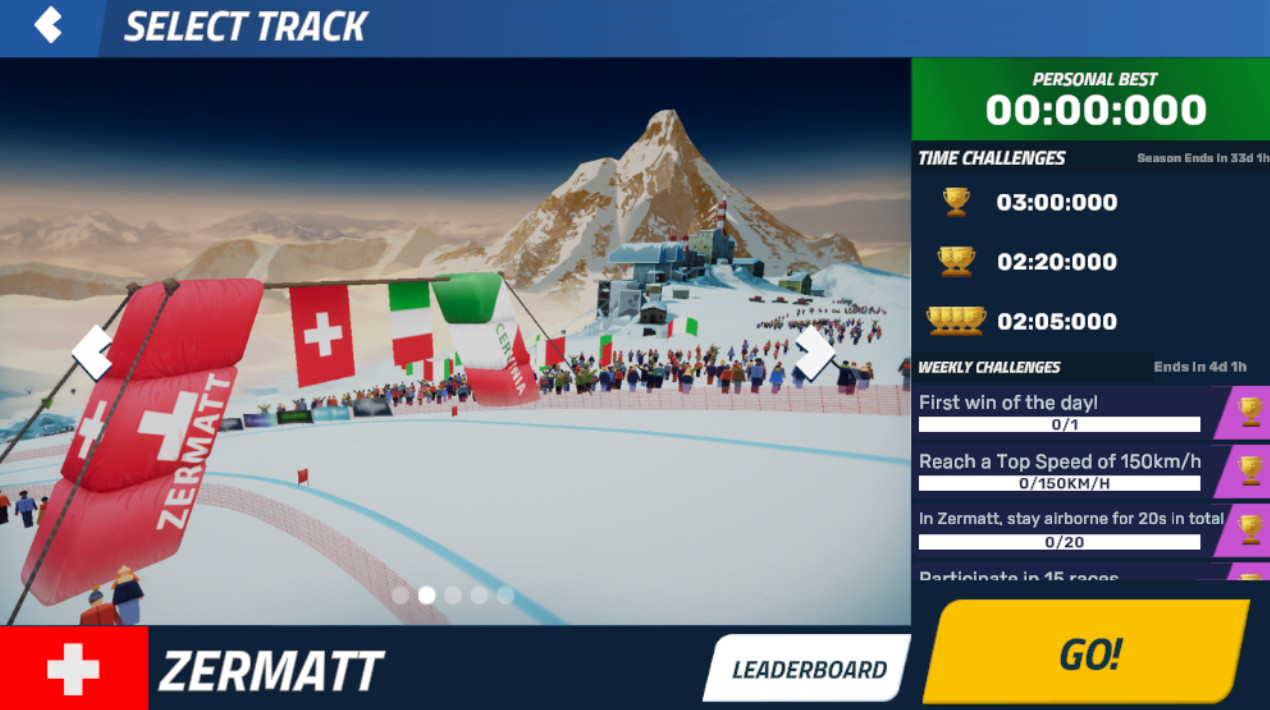 1、滑雪大挑战游戏的关卡太多,是需要挑战自己,玩家也是要准备好迎接你的对手。