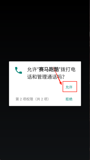 2、授权通话:在权限弹窗中点击“允许”,授予游戏拨打电话与管理通话的权限。