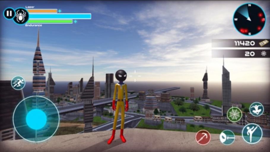 《城市英雄火柴人》是一款很好玩的蜘蛛侠题材战斗游戏,在游戏内玩家是能够控制你的蜘蛛侠英雄在城市里自由的探索,里面的画面都是非常逼真,去用自己的超能力解决更多挑战。你在遇到敌人时就要去战斗,用自己的操作来打败他们,是会获得奖励的。