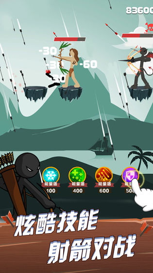 1、火柴人弓箭手游戏里的场景会随机投下炸弹,丰富的关卡充满挑战。
