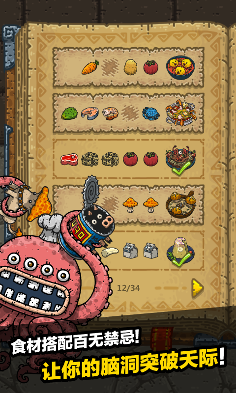 2、所有的食材都会在你的创作中一一出现在深色菜肴中,以吸引更多的怪物顾客。
