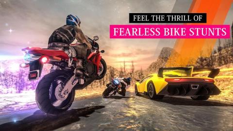 1、这款极限摩托竞速游戏的竞速过程非常刺激,超强的节奏会带来很大的压力。