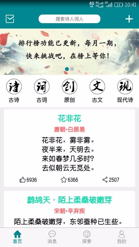 3、在广场上,可以看到很多关于诗歌和歌曲的信息,在线实时阅读。