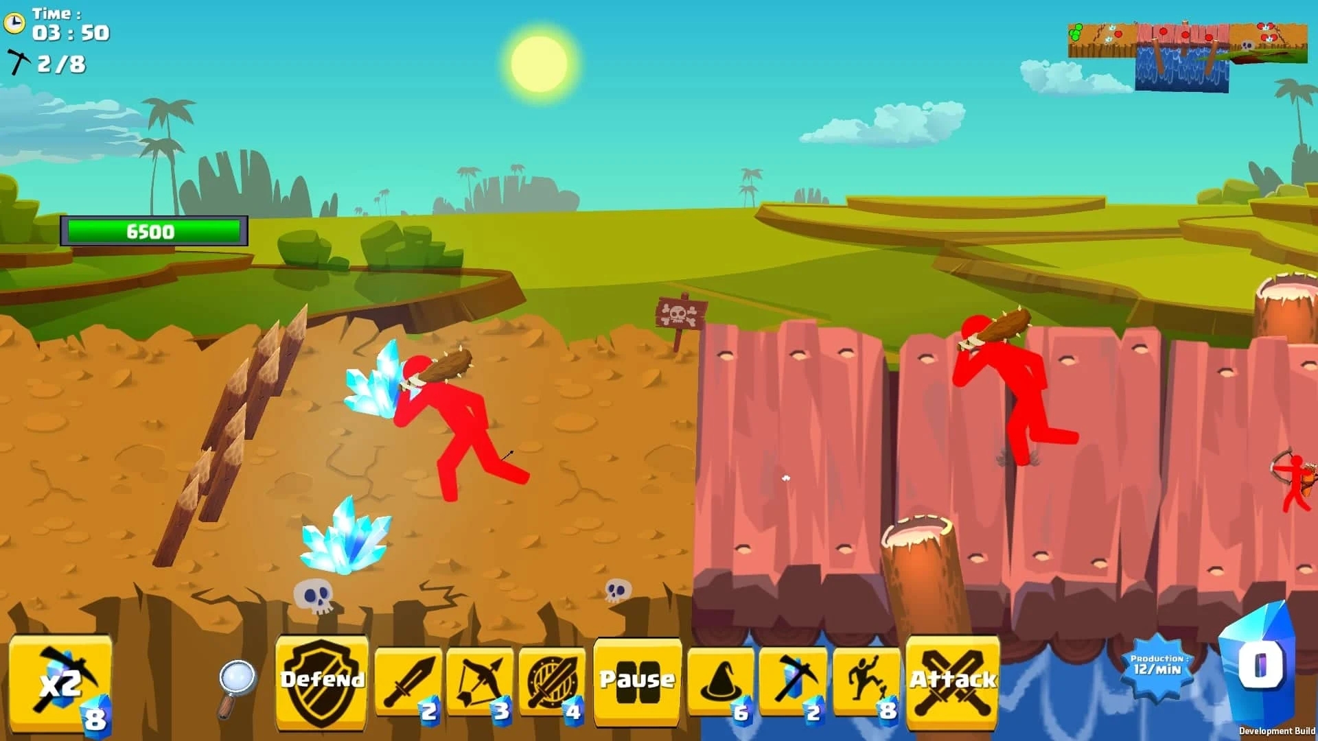 3、火柴人水晶战争游戏内两边的士兵都可以放上去作战,看起来场面很不错。