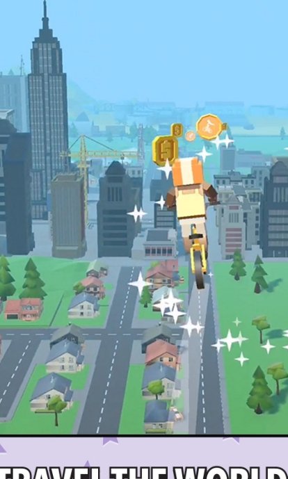 3、驾驶你的自行车,快速转换踏板,在天空中竞赛,向左或向右轻点,收集硬币和表演技巧。