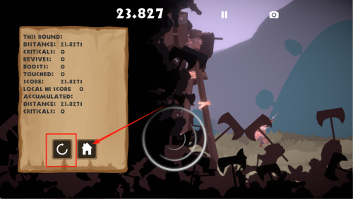 4、冲刺高分:奔跑结束后,查看“SCORE: 23.8271”并点击继续,下次挑战刷新本地最高分。