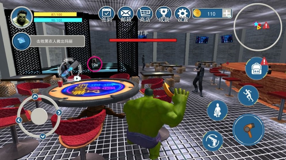 3、作为绿巨人,开始属于你的趣味冒险吧,以保持城市的和平并消灭所有的敌人。