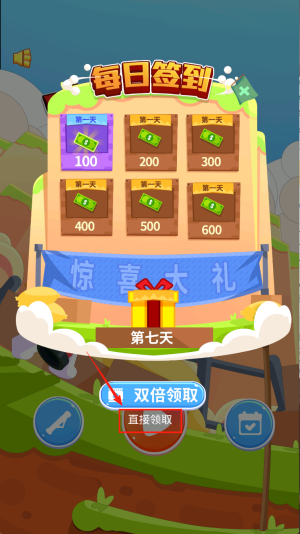 4、领取签到:在“每日签到”界面点击“第一天”奖励图标,随后选择“直接领取”或“双倍领取”。