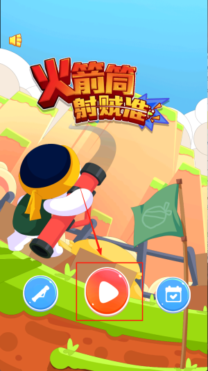 1、查看提示:进入游戏后先看到“箭筒 射准”,确认已进入主界面。