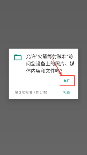 2、授权文件:在弹窗“允许火箭筒射贼准访问照片、媒体内容和文件吗?”中点击“允许”。