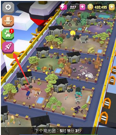 1.首先要将飞船升级到7级(丛林3)才能开启侏罗纪动物园,点击左下角疑似火箭的按钮就能转移到侏罗纪动物园。