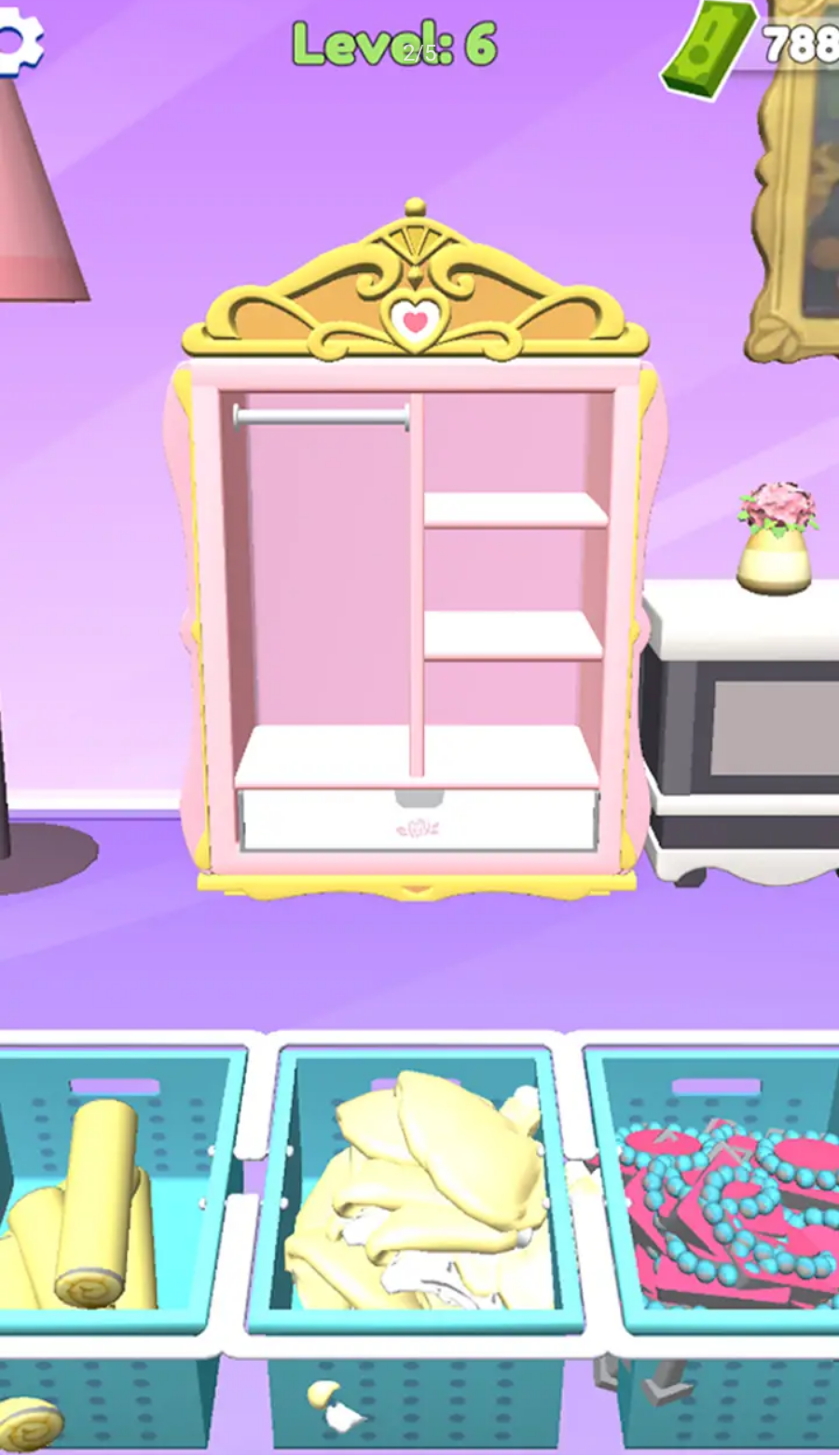《填满衣橱》在这款游戏内玩家要将衣橱里物品进行整理,要将它们给排放整齐,放在原来的位置上。衣橱里物品非常丰富,你要将里面空间给好好利用,只有这样你才能顺利完成挑战。每一关里面衣橱和物品都会不同,挑战难度也在增加,会给你更好的收纳体验。