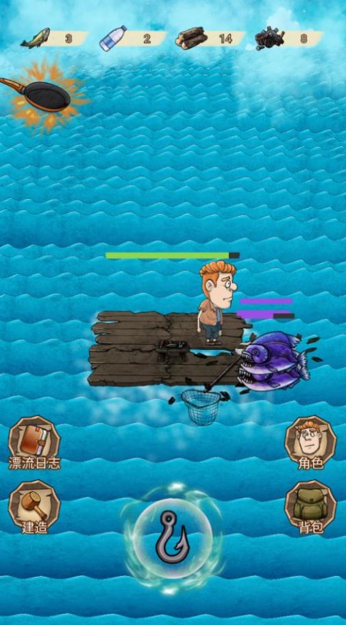 3、你被困在一个筏子上。你只能通过捕捞漂浮在海上的资源来收集必要的生存物资。