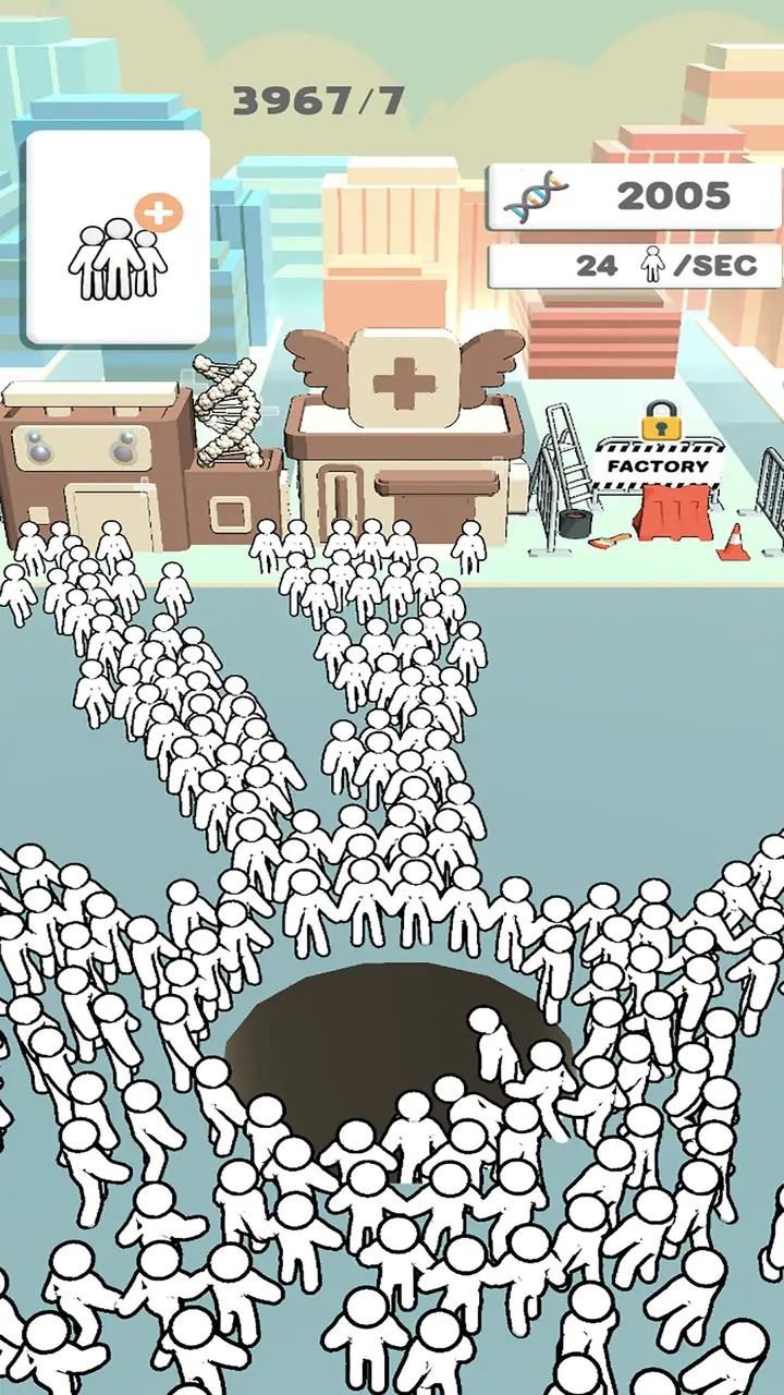 《上帝黑洞》是一款特别好玩的吞噬题材游戏,在游戏里面有着一个非常奇怪的黑洞,会有非常多的小人在旁边围观,一个小人掉了进去,这将会开始一系列的连锁反应,看着小人一个个的掉落入无底的黑洞的这种感觉十分的有趣,你可以感受到不一样的趣味。