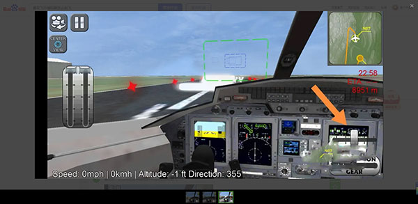5、接近地面要保持平衡,中间的仪表要在“0”左右,让飞行器速度在“200”以下或者左右;