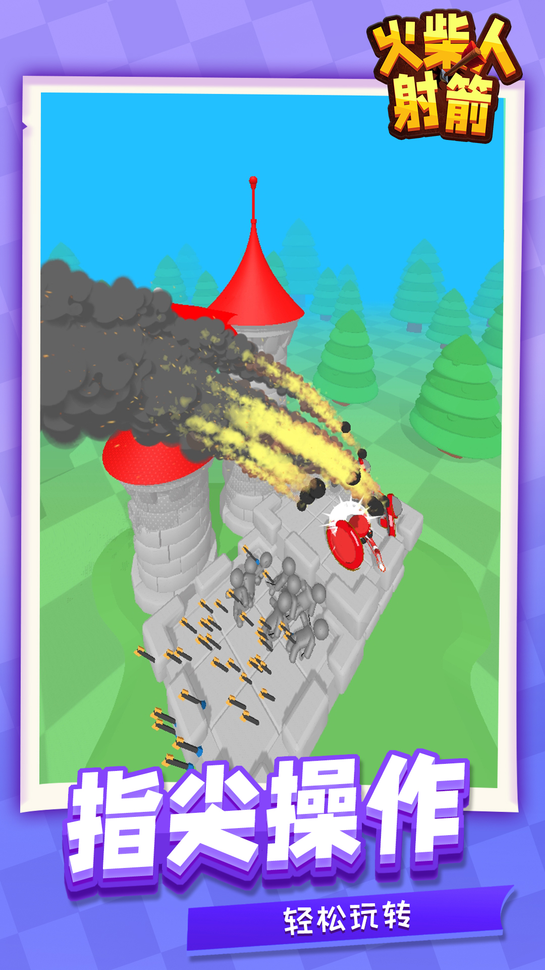 1、火柴人射手是一款塔防战争策略休闲小游戏。玩家可以操纵火柴人弓箭手,用弓箭向对面城堡的敌军射箭。
