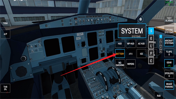 4、进入到飞行器的第一人称模式当中,这里面存在着各种按键,每一种都会具有自己的功能,右侧第一个是警报系统,第二个是地面系统,第三个是货物,第四个是油量。
