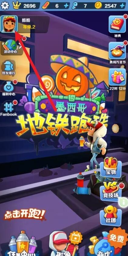 1、打开地铁跑酷后,在游戏界面里,点击游戏头像。