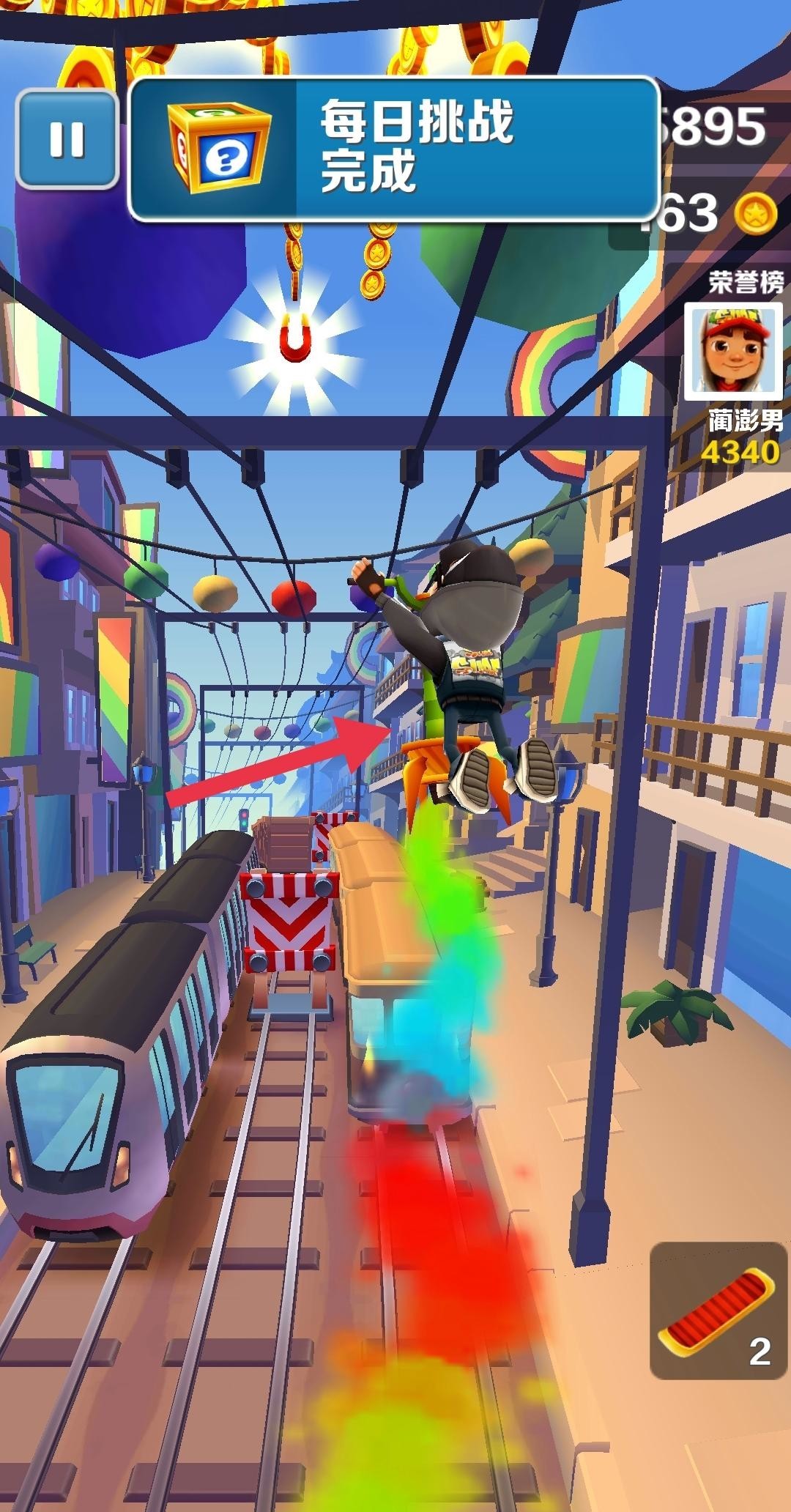 2.如果在游戏中捡到超级跑鞋,穿上它你就可以弹跳自如,轻松上火车。