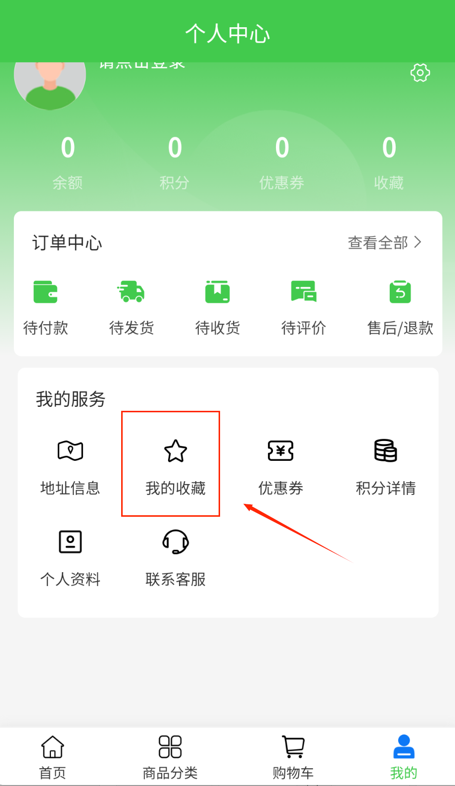 4、个人中心的"我的收藏"分类管理商品,最多可添加20个收货地址呀。常用地址可设置默认快速下单哟。