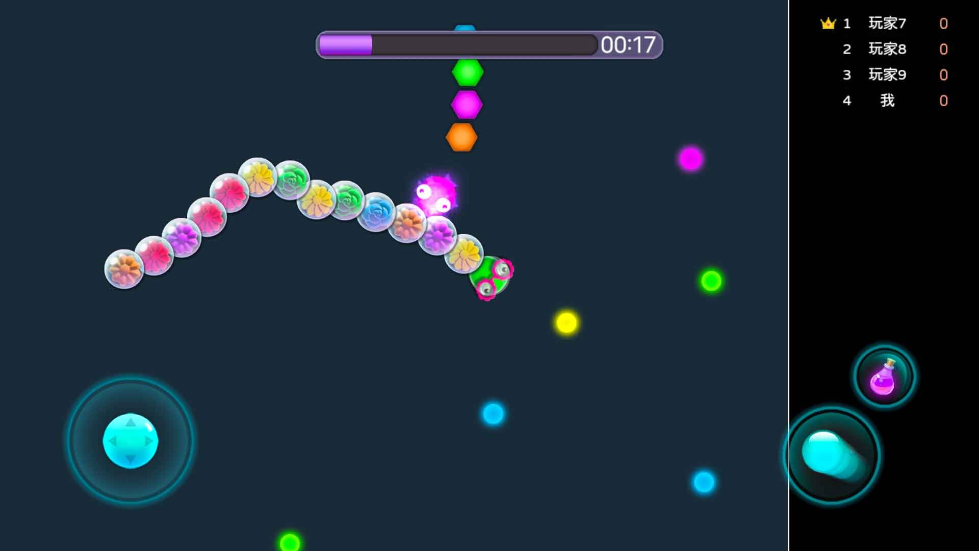 1、玩家要注意其他比你长的蛇的敌人,躲开他们,小心点,你可能会有翻盘的结果。