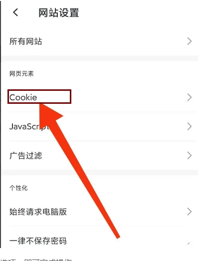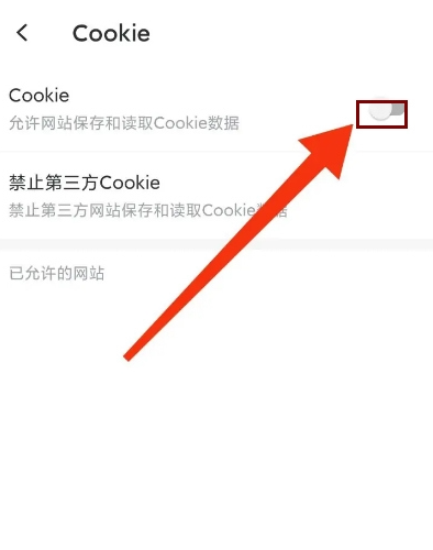3、最后点击开启【Cookie】选项,即可完成操作。